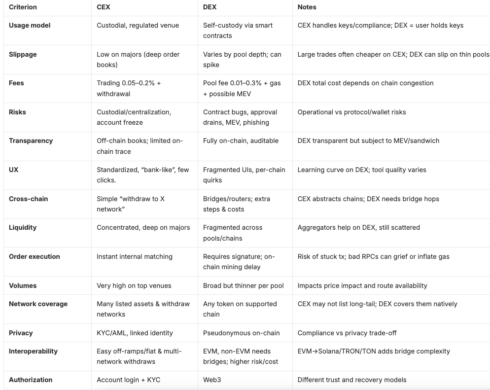 Position against DEXs: latency, slippage, gas costs, compliance, UX