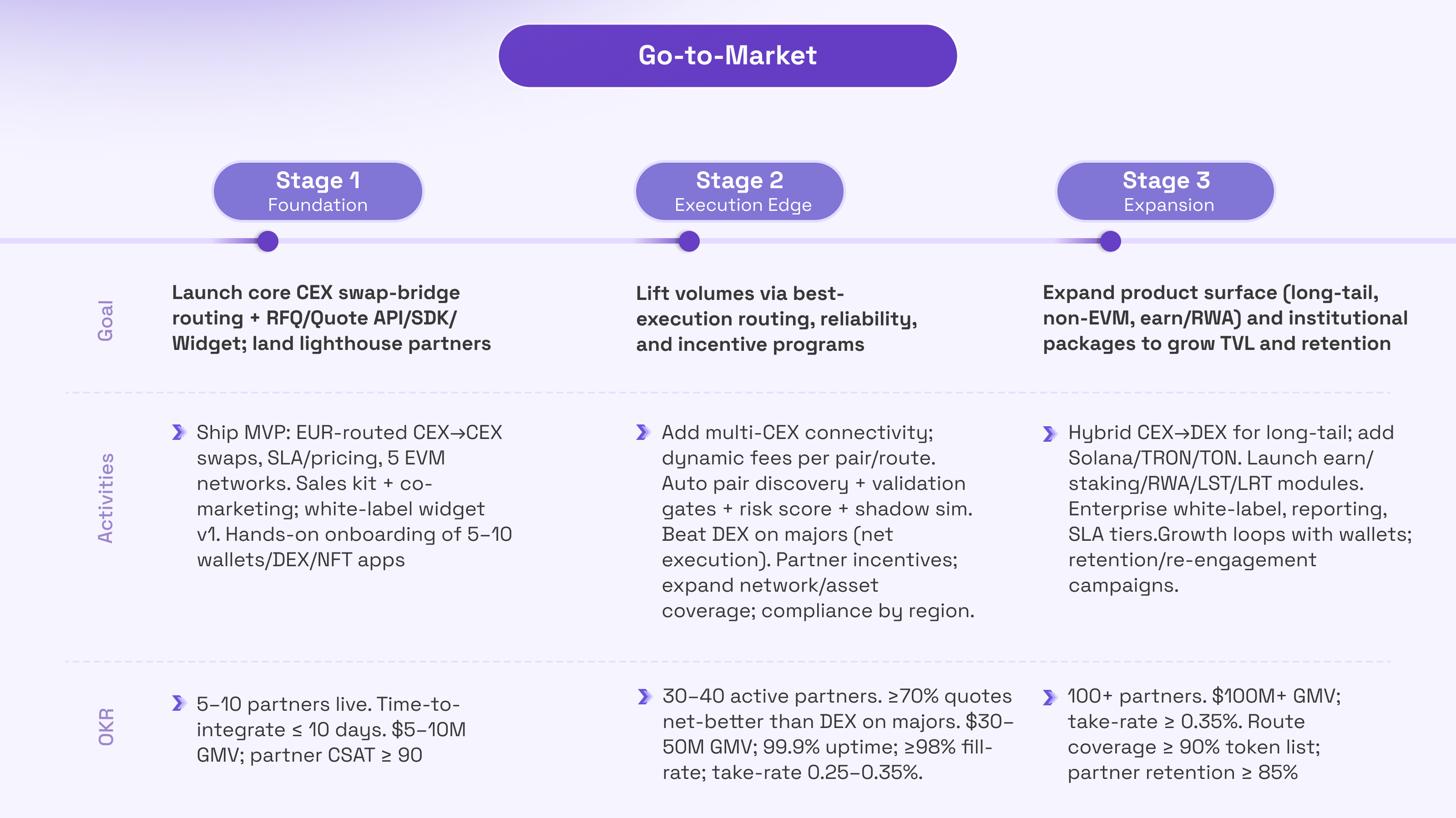 - Who they are: non-custodial products with a large user base; they want retention and monetization without building an exchange; they offer a Web3 interface and aim to make the UX friendlier.